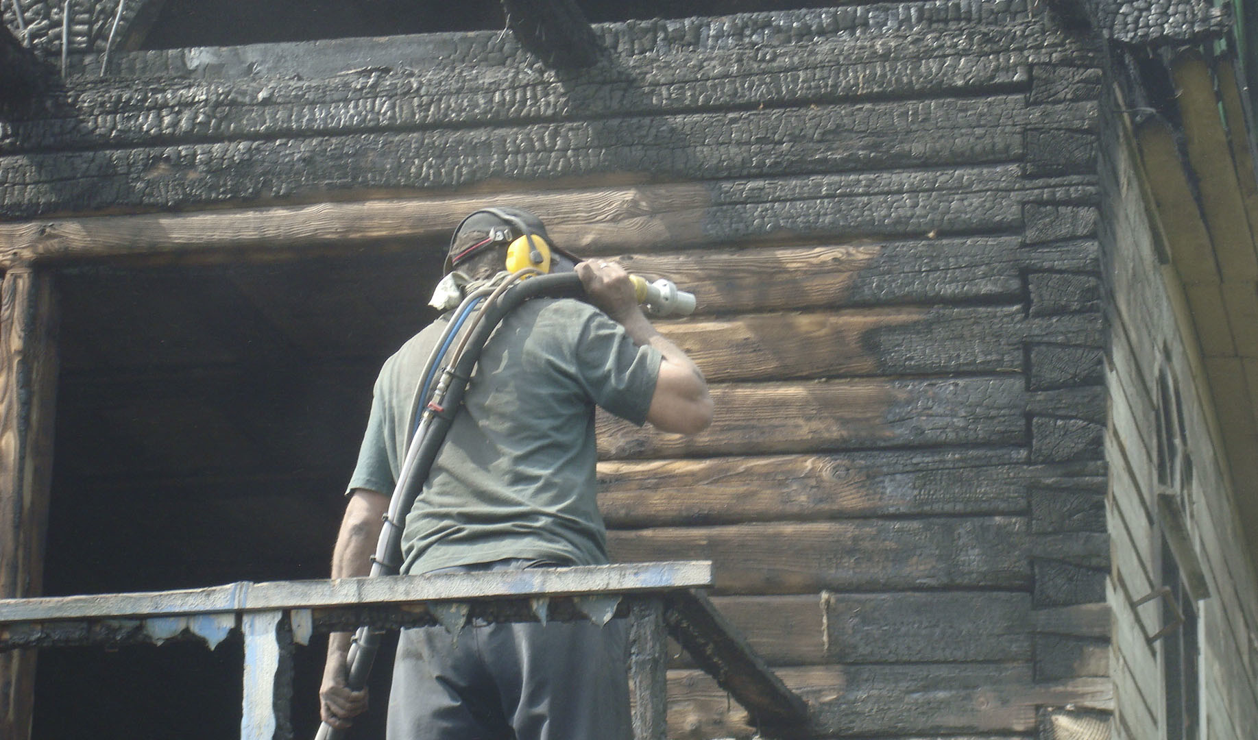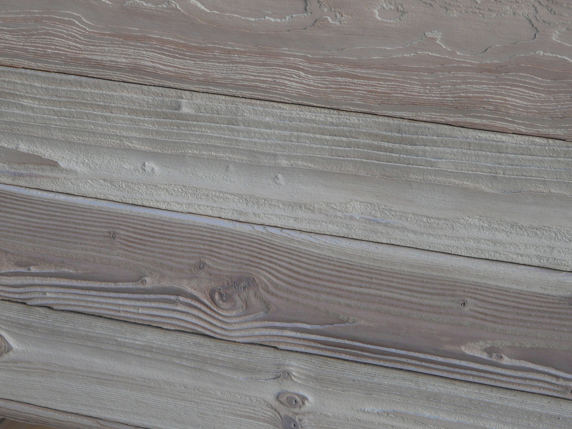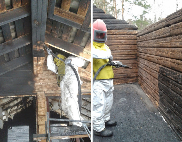 При помощи пескоструйной очистки можно снять верхние слои краски с деревянных конструкций. Обработанная пескоструйкой древесина приобретает красивый рельеф, становится видна природная структура дерева.