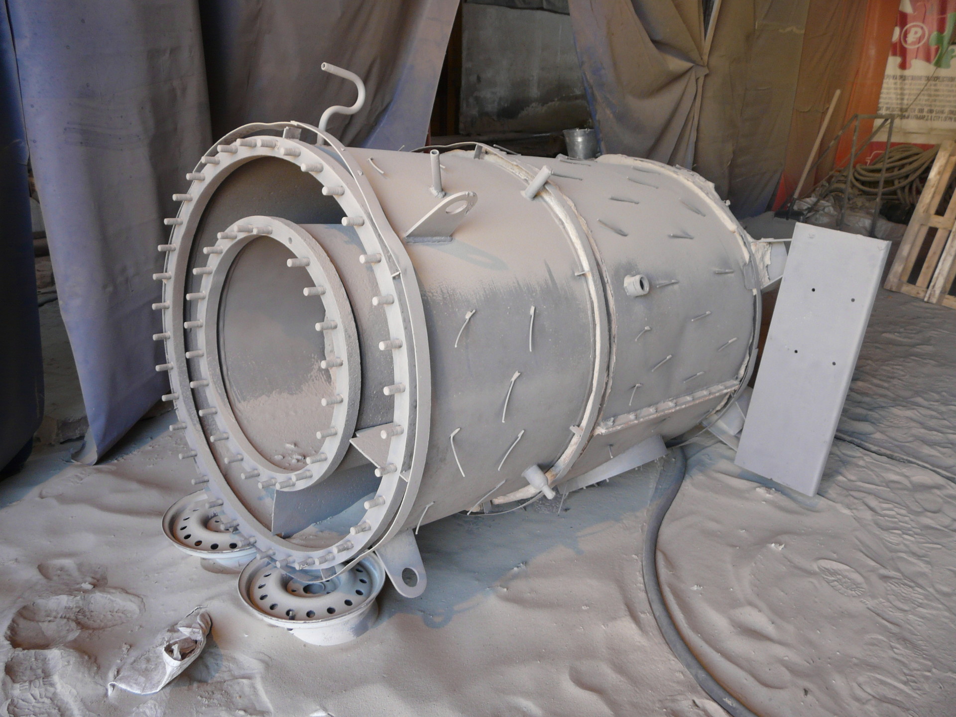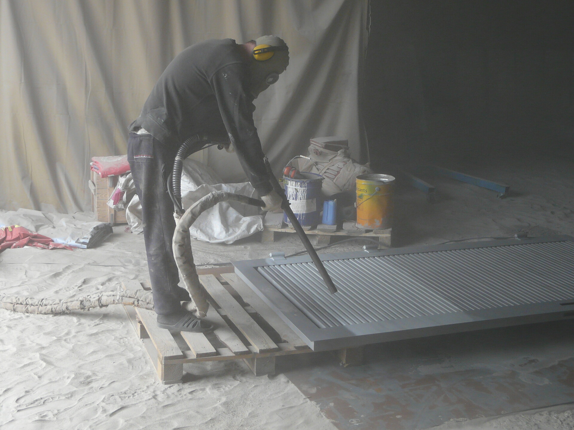 При помощи абразивоструйной очистки с металлических конструкций удаляют старую краску, ржавчину и другие загрязнения. Кроме того, при струйной очистке удаляется вторичная окалина, которая образуется на новой стали.